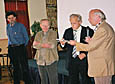 Ook werd er een nieuw boek gepresenteerd getiteld "Jules Verne en de Cybiont". Het is het derde boek uit de reeks die de stichting tijd heeft uitgegeven. In dit boek komt o.a. de Cybiont ter sprake, zoals die beschreven wordt door de futuroloog Joël de Rosnay in zijn boek "De symbiotische mens". Professor Janos Koppandy van de Universiteit in Weimar heeft geschreven over zijn ervaringen met de ecokathedraal, die hij sinds 1980 regelmatig bezoekt. Op de foto ziet u van links naar rechts Janos Koppandy, Louis le Roy, wethouder Lykele Buwalda, en voorzitter Peter Brinkman.