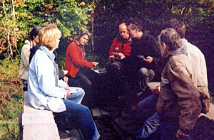 Even bijpraten op een toren van stoeptegels en bakstenen