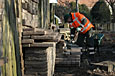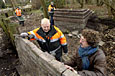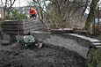Er is ook een samenwerking met de Akademie van Bouwkunst in Groningen. Een aantal studenten van deze opleiding zal de komende jaren actief meewerken aan de realisatie van een deel van de Kennedylaantuin, namelijk het gedeelte aan de zuidkant waar een aansluiting komt met een loopbrug die voor een verbinding met Oranjewoud zorgt (foto hieronder). Op de linker foto is een aantal studenten te zien die met een workshop bezig zijn o.l.v. Rob Hendriks, Piet Vollaard en Alex van de Beld. Het thema van de workshop was "de factor Tijd in de architectuur", en heeft ideeen opgeleverd over de invulling van een nieuw gedeelte van de Kennedylaantuin.