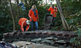 In januari is een een groep mensen begonnen met de werkzaamheden in de Kennedylaantuin in Heerenveen. Op de foto is Henk Pleiter te zien, die instructies geeft bij het bouwen van een muur, die bestaat uit restmateriaal van stratenmakers. De technieken die gebruikt worden, zijn eerder door Louis le Roy bij de bouw van de ecokathedraal in Mildam toegepast, en zullen hier verder worden ontwikkeld.