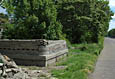 De 'toren' heeft ook weer een aantal lagen stoeptegels gekregen, en ook is er een begin gemaakt met de fundering van trottoirbanden voor de bouw van een nieuw muurtje naast deze toren.