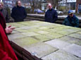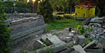 Na lange tijd onder een grote stapel stenen gelegen te hebben, wordt nu met dit materiaal een cirkelvormig bouwwerk gemaakt, waar ook zitplekken zullen komen. Aan de straatkant komt een ruimte voor planten.