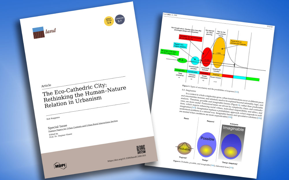 In het wetenschappelijke, engelstalige artikel "Eco-cathedric city: Rethinking the Human–Nature Relation in Urbanism" beschrijft Rob Roggema zeer gedetailleerd hoe we ecokathedrale steden zouden kunnen realiseren.