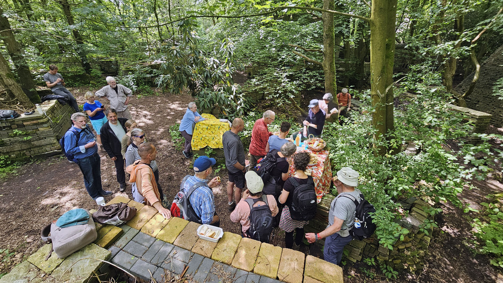 Deelnemers van de Le Roy-wandeling in 2024 aan de lunch in de ecokathedraal in Mildam