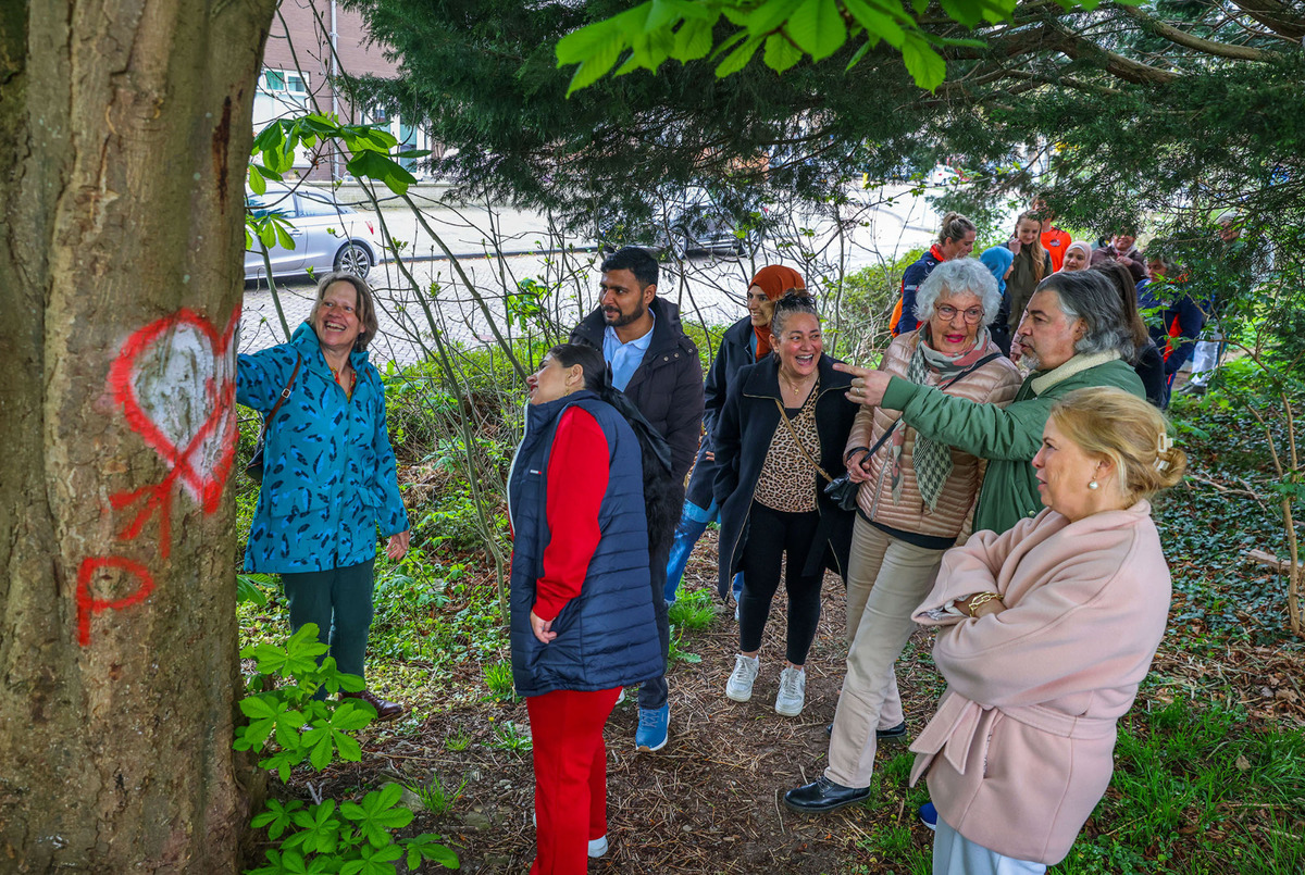 De vrijwilligers lopen elke week door Heerenveen met een groep anderstaligen. Het is onderdeel van ‘Praat buiten’, een initiatief van de gemeente Heerenveen, team buurtsportcoaches van Sport Fryslân en de Bibliotheek Heerenveen. „Er wordt Nederlands geleerd, ze krijgen punten voor het inburgeringsexamen en maken verbinding.”