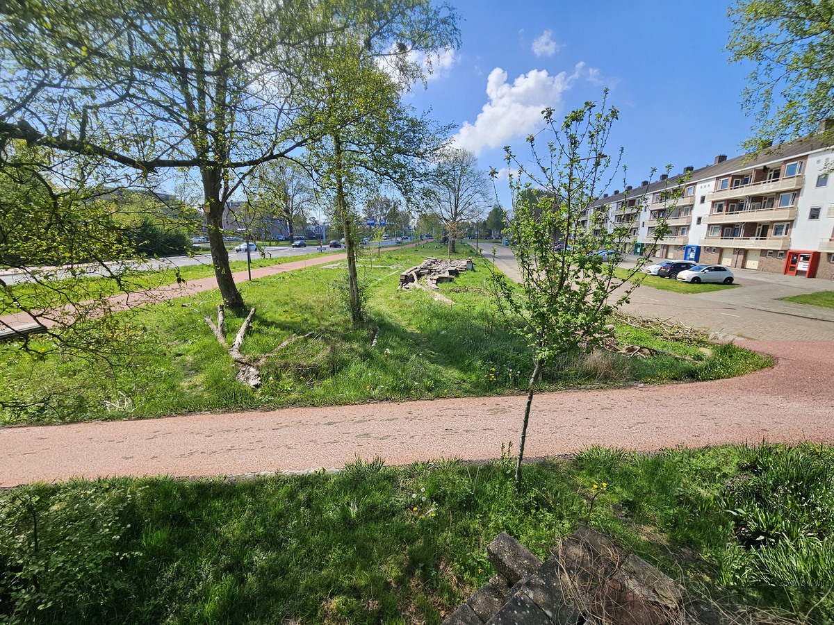 Om verschillende redenen vinden wij dat geen goed idee, waarbij het belangrijkste argument is dat het toch al kleine stuk groen (ontstaaan door de uitbreiding van de tuin vorig jaar juni) doormidden wordt gesneden door een 3,5 meter brede strook waardoor twee nog kleinere stukken overblijven.